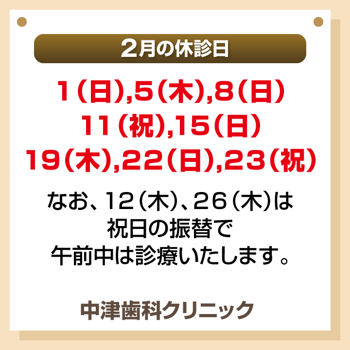 2月休診日情報